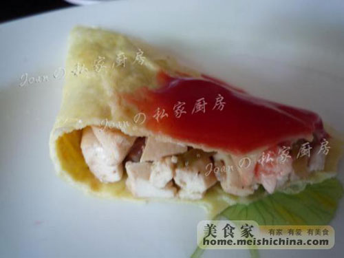 及以下步骤:煎好的蛋饼。 将炒好的豆腐等铺在蛋皮上。 将蛋皮对折,并浇点番茄酱即可。 再下洋葱和虾仁炒熟。 倒入煎好的豆腐块和黄瓜丝,加点盐和味精调味后盛出。 鸡蛋打散。 油热倒入蛋液煎蛋皮。 煎好的蛋饼。 将炒好的豆腐等铺在蛋皮上。 将蛋皮对折,并浇点番茄酱即可。