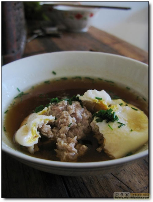 及以下步骤:把肉切碎加入自己喜欢的调料。 鸡蛋磕入小酒盅。 把肉切碎加入自己喜欢的调料。 鸡蛋磕入小酒盅。 把肉切碎加入自己喜欢的调料。 鸡蛋磕入小酒盅。 轻轻的用一支筷子在蛋黄中间挖一个口子。 慢慢的往蛋黄里加调好的肉末。动作幅度一定要小,千万别把蛋黄给打散了。 锅里倒入适量的清水,水开将装满肉末的鸡蛋轻轻倒入,在没有成型时候不要用锅铲去动鸡蛋。在煮鸡蛋的时候用小碗放入麻油、生抽(不喜欢酱油的放盐)、味精、葱花、或者香菜。 煮上7分钟左右差不多就可以出锅了。