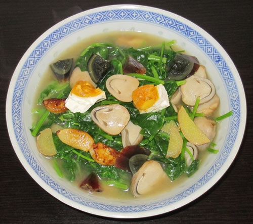 不知从哪年开始,餐馆的菜单里流行起各式上汤蔬菜。流行至今,说明这个菜式是很有生命力的。在广州,比较经典的内容一般都有煎黄的蒜瓣、松花蛋、咸鸭蛋、草菇和上汤。 http://www.teflon-club.com/club/kaopu_detail.php?reid=1562