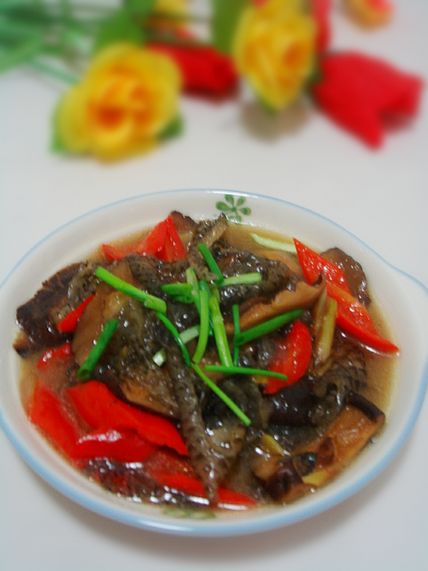 红椒(适量) / 泡发香菇(适量) / 鱼皮(适量)