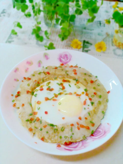 7、在中间打入一个鸡蛋。