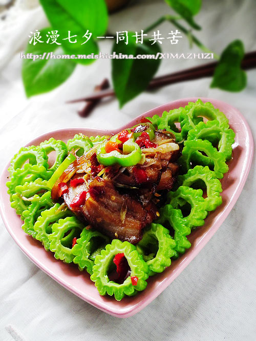 每年农历七月初七这一天是我国汉族的传统节日七夕节。七夕节是我国传统节日中最具浪漫色彩的一个节日。哈哈。。。 咱们也浪漫一把。有点不好意思了。这么大岁数了,老夫老妻了。有点肉麻。我和老公结婚20多年也没有真正过一个七夕节。大家不要笑话哟。 我和老公生活了20多年,大多时间都是老公照顾我,从来也没说过感激的话。今天上一道我的自创菜【同甘共苦】。用这道菜回锅肉片炒苦瓜来回忆一下我们20年的风风雨雨。有肉同享,有苦同当。