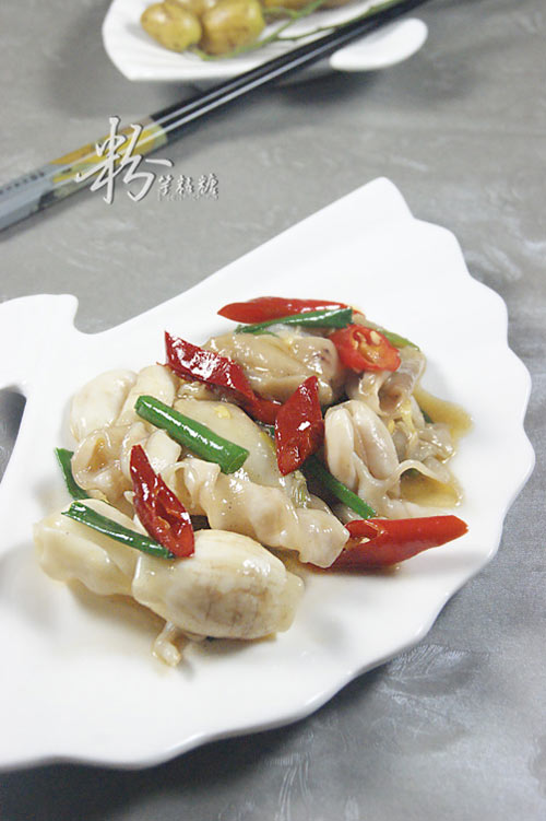 及以下步骤:主料备好。 鱼泡洗净,沥干水份,葱洗净切成段,葱白葱叶分开,红椒洗净切斜段,姜去皮洗净切成丝待用。 主料备好。 鱼泡洗净,沥干水份,葱洗净切成段,葱白葱叶分开,红椒洗净切斜段,姜去皮洗净切成丝待用。 主料备好。 鱼泡洗净,沥干水份,葱洗净切成段,葱白葱叶分开,红椒洗净切斜段,姜去皮洗净切成丝待用。 大火起油锅,待油热之后放入姜丝、葱白和红椒爆香。 然后把鱼泡放入翻炒片刻,再淋入广东米酒翻炒。 火调到中小火,撒入胡椒粉,淋入生抽。 继续翻炒至水分微干,然后撒入盐、鸡精和葱叶,翻炒至无水份即可。
