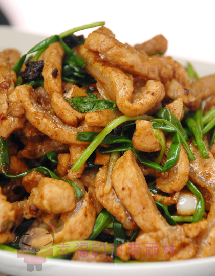 7、待蒜末微黄时下板筋。