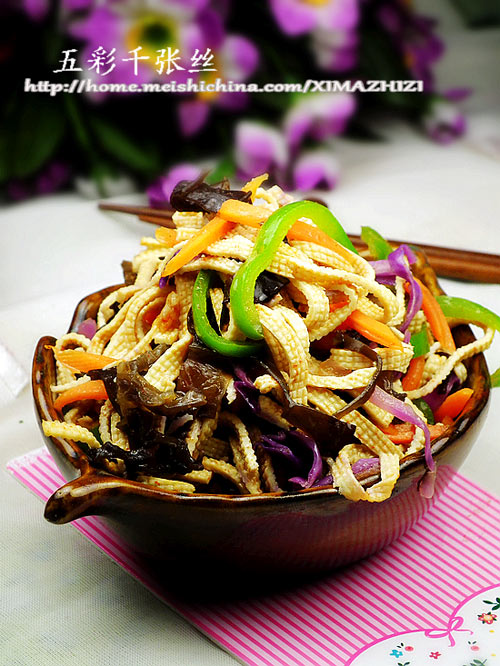 五彩千张丝烹饪方法 图片大全及制作所需厨具设备是网友推荐小编整理所得,是网友的分享推荐,是饮食文化的资源共享,中华美食文化是中华文明的具体践行,美食五彩千张丝烹饪制作就是在传承中华文化。