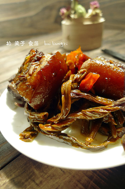 及以下步骤:五花肉切大块 开水汆烫两分钟 捞出 锅里少许油 汆烫过的五花肉 放入慢慢煸炒5分钟出油 五花肉切大块 开水汆烫两分钟 捞出 锅里少许油 汆烫过的五花肉 放入慢慢煸炒5分钟出油 五花肉切大块 开水汆烫两分钟 捞出 锅里少许油 汆烫过的五花肉 放入慢慢煸炒5分钟出油 放一块豆腐乳 酱油 糖 调味上色 翻炒到颜色均匀分布在肉上 倒入开水 水量没过肉 转换到砂锅中 小火炖肉 同时放香料(八角一个 香叶两片 小茴香一撮 干辣椒两个) 晒干的干豆角 之前要用水浸泡一天 泡好的豆角 放入炖肉中 继续炖大约1小时 豆角软肉酥