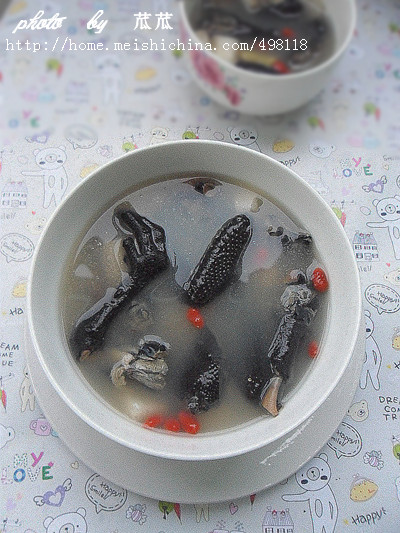 及以下步骤:小火慢炖半小时之后,放入山药和枸杞,继续慢炖5分钟左右,最后炖好后,加入少许盐调味即可。 一碗很清淡的乌鸡汤就炖好了。 将食材准备好。 山药去皮后切成块状,放在盐水里稍稍泡下。 枸杞用温水泡好。 乌鸡洗净后剁成块状。(嫌麻烦可以省略) 姜片2片切好,山药沥干水分分备用。 锅内加水没过乌鸡,加入姜片和少许料酒。 小火慢炖半小时之后,放入山药和枸杞,继续慢炖5分钟左右,最后炖好后,加入少许盐调味即可。 一碗很清淡的乌鸡汤就炖好了。