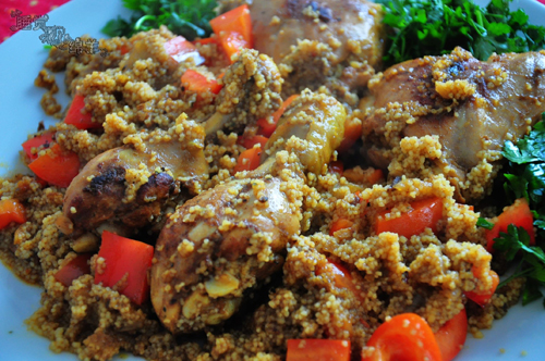 及以下步骤:加入鸡汤,煮开后,上盖,小火焖半个小时。 取75 gcouscous。 红甜椒去蒂去囊,切成小块。 西芹叶洗净,切碎。 将couscous、甜椒加入到锅里,继续煮10分钟。如果汤汁不够,可以加水。用盐、胡椒调味。 装盘后撒上西芹叶碎,即可。 红甜椒去蒂去囊,切成小块。 西芹叶洗净,切碎。 将couscous、甜椒加入到锅里,继续煮10分钟。如果汤汁不够,可以加水。用盐、胡椒调味。 装盘后撒上西芹叶碎,即可。