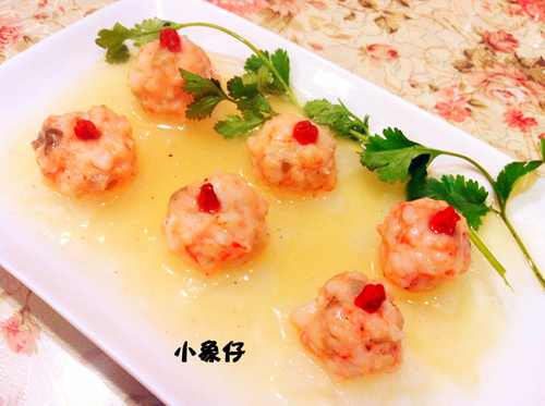 及以下步骤:另外用生粉、水、蚝油、盐、鸡精、胡椒调成蚝油汁待用。 放入枸杞的虾丸,整齐码入盘子里,入锅蒸8分钟即可。 另外一个锅里,倒入蚝油汁,收汤变浓稠即可。 最后将蚝油汁浇在蒸好的枸杞虾丸上即可,再放入香菜叶点缀下会更美观。 喜欢的话,给我投个票吧,多谢咯。 另外用生粉、水、蚝油、盐、鸡精、胡椒调成蚝油汁待用。 放入枸杞的虾丸,整齐码入盘子里,入锅蒸8分钟即可。 另外一个锅里,倒入蚝油汁,收汤变浓稠即可。 最后将蚝油汁浇在蒸好的枸杞虾丸上即可,再放入香菜叶点缀下会更美观。 喜欢的话,给我投个票吧,多谢咯。