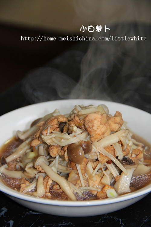 菌菇和鸡肉配在一起味道鲜美无比,多种菌菇搭配在一起也很有趣