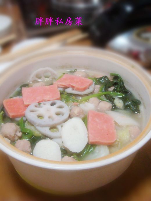 火腿肉丸蔬菜煲烹饪方法 图片大全及制作所需厨具设备是网友推荐小编整理所得,是网友的分享推荐,是饮食文化的资源共享,中华美食文化是中华文明的具体践行,美食火腿肉丸蔬菜煲烹饪制作就是在传承中华文化。