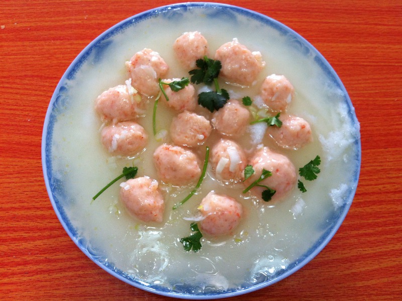 5、另起一锅,加适量的水。水微开时挤入虾丸,水开后,调好鲜咸口味,勾玻璃芡,浇在芙蓉蛋羹上,点缀点香菜段即成。
