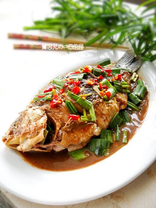 及以下步骤:姜片拨一边,放入鲫鱼两面略微煎一下。 呵呵,鲫鱼自个蹦起来翻了一面,鱼皮完好无损。 锅中余油下入大蒜,炒出香味。 倒入腐乳汁,炒匀。 放入鲫鱼,均匀裹上腐乳汁,焖2分钟;淋入生抽。 加入黑胡椒粉,煮2分钟。 加入红剁椒。调好味,盛入盘中。 放入鲫鱼,均匀裹上腐乳汁,焖2分钟;淋入生抽。 加入黑胡椒粉,煮2分钟。 加入红剁椒。调好味,盛入盘中。