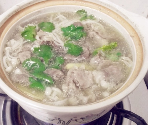 及以下步骤:放进肥牛继续大火煮。 肥牛烫至变色,放盐调味即可出锅了。 撒些香菜。 金针菇切去老根头,洗净撕开。 汤锅里放适量水,姜片大火烧。 放入金针菇, 我喜欢冷水放金针菇,这样慢慢由冷到热,让金针菇的养分彻底的释放出来,汤更鲜美。 金针菇煮至软身。 放进肥牛继续大火煮。 肥牛烫至变色,放盐调味即可出锅了。 撒些香菜。