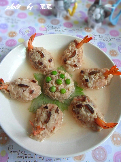 及以下步骤:将处理好的虾放在勺子内,再放上腌制好的鱼蓉,形成鱼身。 依次将做好的鱼身,摆放在擦了油的盘子里。(避免粘住) 上锅蒸熟即可。 将黑木耳放入开水内焯烫熟后,用剪刀剪出鱼的眼睛和鱼鳍。 在制作的过程中需要有耐心哈。 调料的量可根据自己的口味增加或减少。 上锅蒸熟即可。 将黑木耳放入开水内焯烫熟后,用剪刀剪出鱼的眼睛和鱼鳍。 在制作的过程中需要有耐心哈。 调料的量可根据自己的口味增加或减少。