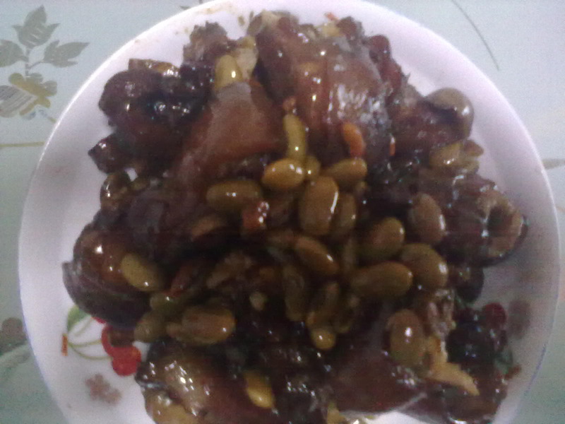 盐(少许) / 姜(少许) / 冰糖(少许) / 生抽(少许) / 八角(少许) / 老抽(少许) / 橄榄油(少许) / 青豆(3两)