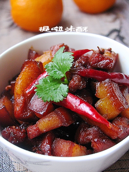 红烧肉是许多人都非常喜欢的菜,虽然说各人喜欢的口味不尽相同,但是总体来说暗红透亮,肥而不腻,瘦而不柴的红烧肉才能达到好菜的标准。 红烧肉是老公的最爱,而我,一个对猪肉不是很感冒的人,在吃过几次不大正宗的红烧肉后,对这道菜更是提不起兴趣来。可是,经不住那个人的念叨,就在做了一次之后很久的昨天,又一次尝试了一回。 因为做好之后天色已经暗沉了下来,拍的照片不是很好,但是,我要很不自谦地借用老公的原话自夸一句:味道太棒了!肥肉酥软,一点点油腻的感觉都没有。而瘦也煎得刚刚好,有嚼头,但是不会柴。连我们家的小家伙也频频举筷瞄准它。最后的结果是,这一小碗红烧肉被我们一家三口一顿就吃了个底朝天。 唯一觉得美中不足的是,买肉的时候我怕家里的刀不好切,就直接让肉摊的人给切的块,切得太惨不忍睹了。虽然回家后我还改过刀,就这,最后的成品也是乱七八糟一团。看来下次得自己动手啦!