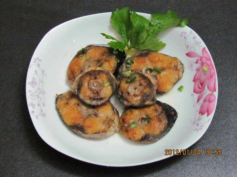 此道菜胜在原味,用油、小火煎出马鲛鱼的肉香。不要另起新油爆葱花。