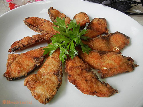 及以下步骤:吃时再烩即可。 青鱼一条,去鳞,去肚,去鳃,去头,洗净,切成厚片。 放盐,糖,料酒,胡椒粉,姜末。 青鱼一条,去鳞,去肚,去鳃,去头,洗净,切成厚片。 放盐,糖,料酒,胡椒粉,姜末。 搅拌入味。 放适量面粉,搅拌好。 放入7分热的油中,中火炸。 两面金黄时,捞出控油。 吃时再烩即可。