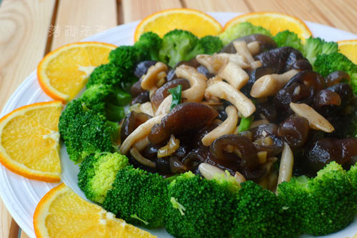 西兰花(适量) / 橙子(适量) / 盐(适量) / 鸡精(适量) / 生抽(适量) / 糖(适量) / 葱(适量) / 料酒(适量)
