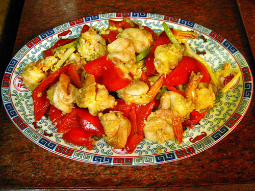 这道菜的功夫在于炒功,要用高火爆炒以保证炒出来的虾球爽脆。