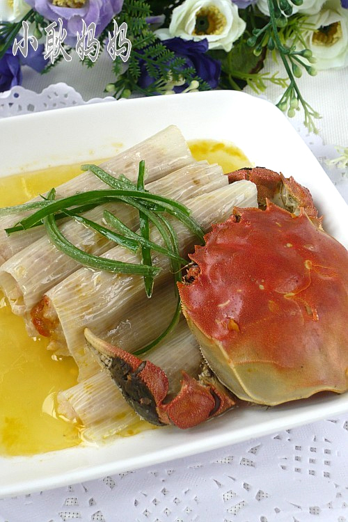 对于喜欢吃蟹,但是又怕麻烦的的吃客来说,这样的吃法绝对很过瘾呐,猪肉的香,螃蟹的鲜,京葱的香融合在一起,回味无穷!