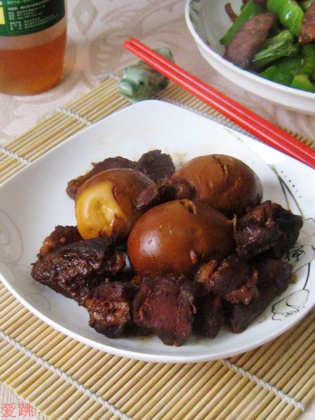 酱肉煨蛋,就是把酱肉与鸡蛋一起煮。酱肉很香,蛋也好吃。 因为没有放油,收干汤汁,便于携带,所以此菜也可以作为出门旅游的小菜与零食。
