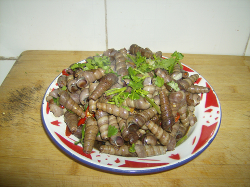 是海里的那种尖螺蛳。一定要把尖头绞去,否者不会入味。