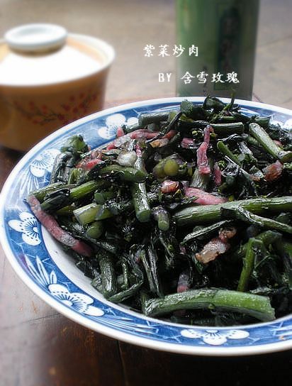 海紫菜人人都知,但我今天做的这道菜,此紫菜非彼紫菜,我本来想在百度上搜下的,却意外地没有找到,也许人家本来不叫这名,但我们这儿的人都这么叫,现在人流动性相当大,但好像也只听闻武汉那边有个地方也有,别的地方,包括距离只有三四十分钟车程的扬州,都没有,而且这菜很奇怪的是,移到外地去,头一年勉强能种,第二年颜色就不紫了,而且味道也大不同。但是它是我们这儿冬天的当家菜,来客了,炒上一盘,也丝毫不掉价。那滋味,吃惯的人会一直想念,表姐家在扬州,每年回来,都带上一些回去,今年更是带了十斤,说是邻居朋友都爱吃。