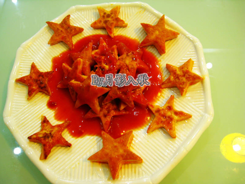 3.煎好的海星放入锅中和茄汁同煮的时候,最好不要搅拌了,以免弄碎漂亮的海星。