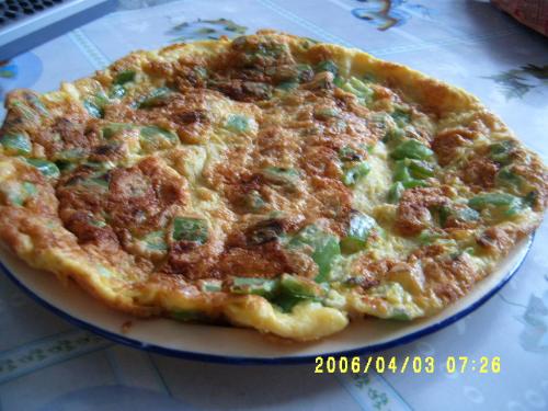 及以下步骤:取三个鸡蛋,打入碗中,将青椒细条浑如鸡蛋中搅匀,可酌量加盐和味精。 大青椒一个,洗净,切成细条状,也可切碎。 取三个鸡蛋,打入碗中,将青椒细条浑如鸡蛋中搅匀,可酌量加盐和味精。 大青椒一个,洗净,切成细条状,也可切碎。 取三个鸡蛋,打入碗中,将青椒细条浑如鸡蛋中搅匀,可酌量加盐和味精。 大青椒一个,洗净,切成细条状,也可切碎。 取三个鸡蛋,打入碗中,将青椒细条浑如鸡蛋中搅匀,可酌量加盐和味精。 大青椒一个,洗净,切成细条状,也可切碎。 取三个鸡蛋,打入碗中,将青椒细条浑如鸡蛋中搅匀,可酌量加盐和味精。 平底锅中加入菜籽油,量要略多,待油热后,倒入鸡蛋,搅动,待快熟时,用平底铲将其按压成饼状,翻锅出盘。