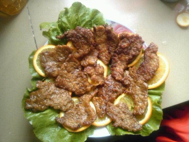猪扒还能有清蒸的?还咖喱黑椒黄金猪扒?都黑椒了还黄金? 不说废话、先来上两张成品图、绝对自制、 来本这样的菜式比较适合香煎的做法、以前试过、卖相也不错、但是因为我家是电磁炉、油温不好掌控、而且是普通的铁锅、没有不粘锅那么好用、煎完以后锅底粘了厚厚的一层黑乎乎的油渣、刷起来很不方便、而且特费油、所以后来就改用蒸的做法、味道都一样、口感稍微有不同、 做法也很简单: 原料:200g猪扒肉 调料:黑胡椒粉、鸡粉、咖喱粉、淀粉、料酒、花生油、生抽 步骤: 1、先用黑胡椒粉、鸡粉、咖喱粉、淀粉、料酒、花生油、生抽调成一碗汤料 2、把洗净的猪扒肉切成如下图所示的大小、厚度的样子、然后用刀背把其拍至烂软的程度、拍后的肉比打之前大一倍、 3、接着把拍好的肉蘸汤料、铺平、上蒸锅、20分钟、蒸至出油、变色即可