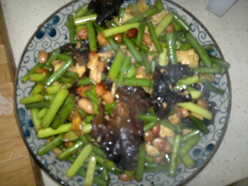 及以下步骤:起油锅,葱花木耳翻炒,木耳炒的砰砰响才好。 放入蒜苔翻炒。 加入花生米翻炒。 最后加鸡蛋翻炒放入生抽,盐,鸡精。出锅。 美味的木须蒜苔炒好啦!!!! 起油锅,葱花木耳翻炒,木耳炒的砰砰响才好。 放入蒜苔翻炒。 加入花生米翻炒。 最后加鸡蛋翻炒放入生抽,盐,鸡精。出锅。 美味的木须蒜苔炒好啦!!!!