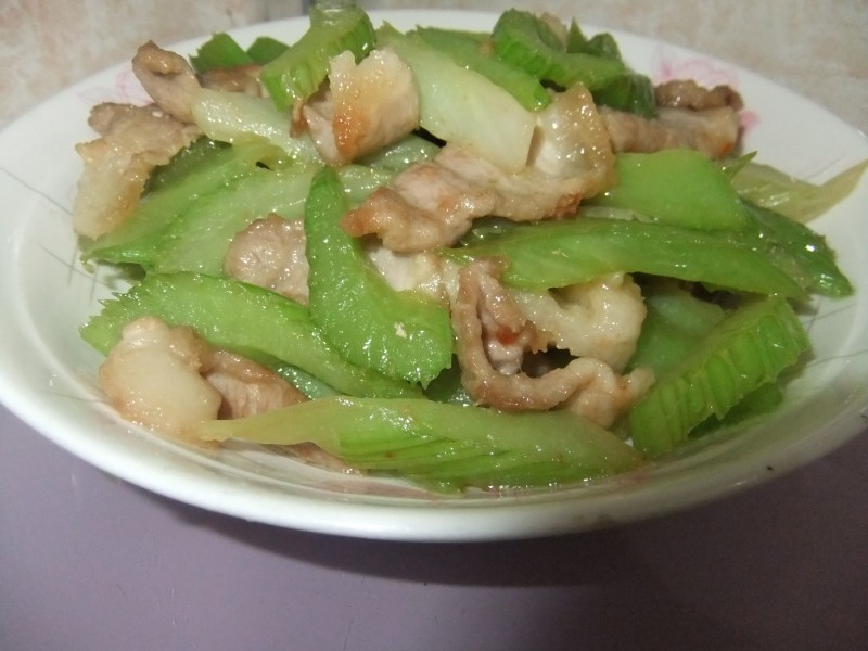 及以下步骤:西芹洗净去老筋,切片备用(居然忘记拍片片了) 肉切片用适量盐、油抓匀静置5分钟,用适量地瓜粉抓匀 西芹洗净去老筋,切片备用(居然忘记拍片片了) 肉切片用适量盐、油抓匀静置5分钟,用适量地瓜粉抓匀 西芹洗净去老筋,切片备用(居然忘记拍片片了) 肉切片用适量盐、油抓匀静置5分钟,用适量地瓜粉抓匀 油锅加热至冒烟,把腌好的肉片快速炒散 肉炒散加入适量酱油炒匀 下西芹炒熟,放适量盐、鸡精、料酒调味 起锅上桌开吃吧