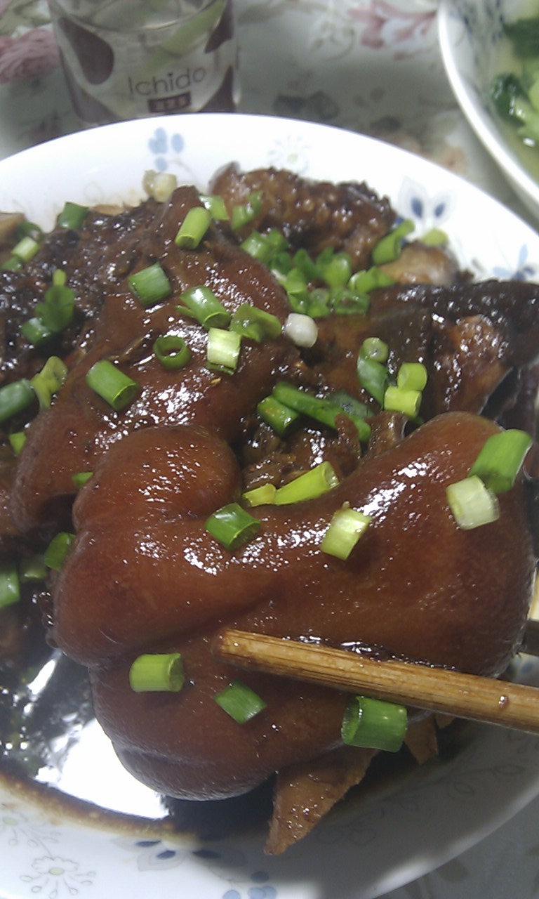 及以下步骤:猪蹄洗净,放在开水里氽一下 将猪蹄放入电高压锅,加入黄酒,老抽,生姜,大蒜头,干辣椒和适量盐,压30分钟 猪蹄洗净,放在开水里氽一下 将猪蹄放入电高压锅,加入黄酒,老抽,生姜,大蒜头,干辣椒和适量盐,压30分钟 猪蹄洗净,放在开水里氽一下 将猪蹄放入电高压锅,加入黄酒,老抽,生姜,大蒜头,干辣椒和适量盐,压30分钟 猪蹄洗净,放在开水里氽一下 将猪蹄放入电高压锅,加入黄酒,老抽,生姜,大蒜头,干辣椒和适量盐,压30分钟 待高压锅的气放完后,装盘撒点葱花,完工 配上一碗白米饭,真香