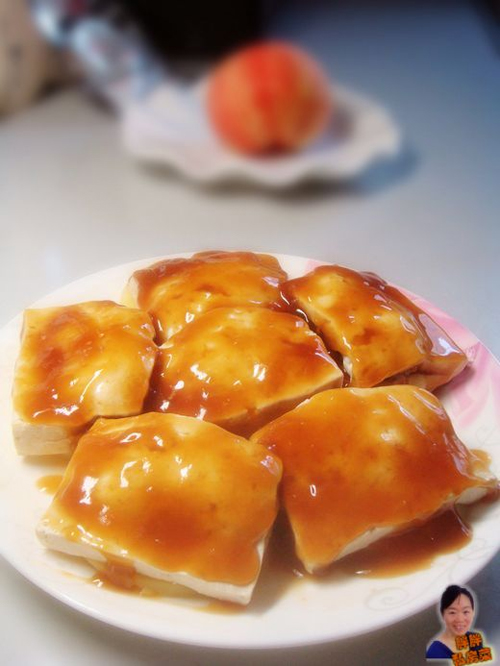 肉馅豆腐夹--调好的肉馅放到两片豆腐中间,浇上红烧汁,吃到嘴里感觉滑嫩爽口,咸鲜味道