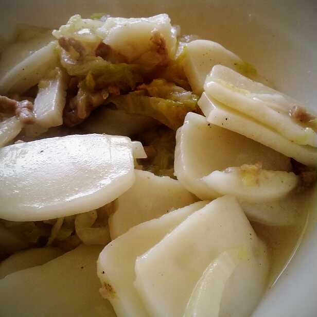 年糕通常在春节期间吃,喻意年年高升。平时也可以吃,以求达到一直高升。哈哈~ 这道白菜肉丝炒年糕是我家里经常做的一道家常食物,软糯的年糕配上煮得烂烂的黄芽菜(大白菜)和香香的肉丝,再佐以少量的胡椒糊吊鲜。味道一级棒!