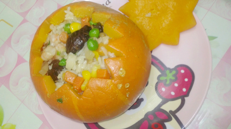 及以下步骤:之后再加入虾肉 煮熟了就差不多了/加上葱花和一点盐,鸡粉 加入米饭之后就可以翻炒至熟,干身 熟了的南瓜会出很多水,把水倒掉备用 最后把炒好的糯米饭盛入南瓜就ok 了~多香啊。一口米饭一口南瓜~ 之后再加入虾肉 煮熟了就差不多了/加上葱花和一点盐,鸡粉 加入米饭之后就可以翻炒至熟,干身 熟了的南瓜会出很多水,把水倒掉备用 最后把炒好的糯米饭盛入南瓜就ok 了~多香啊。一口米饭一口南瓜~