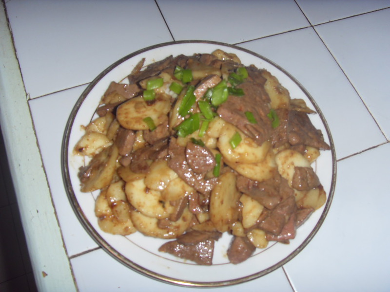 1、荸齐去皮切成园片用淸水浸泡待用.猪肝洗净切成长方片用盐.料酒生粉浆一下.