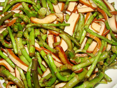 芦蒿,原来应该算是一种地产野菜,初看上去,样子有点象水草,生长在水边。在北方可能不多见。但在江浙一带,特别是南京,芦蒿跟鸭子、菊花脑儿一样,是老百姓餐桌上的常客。有着浓厚的清香味。