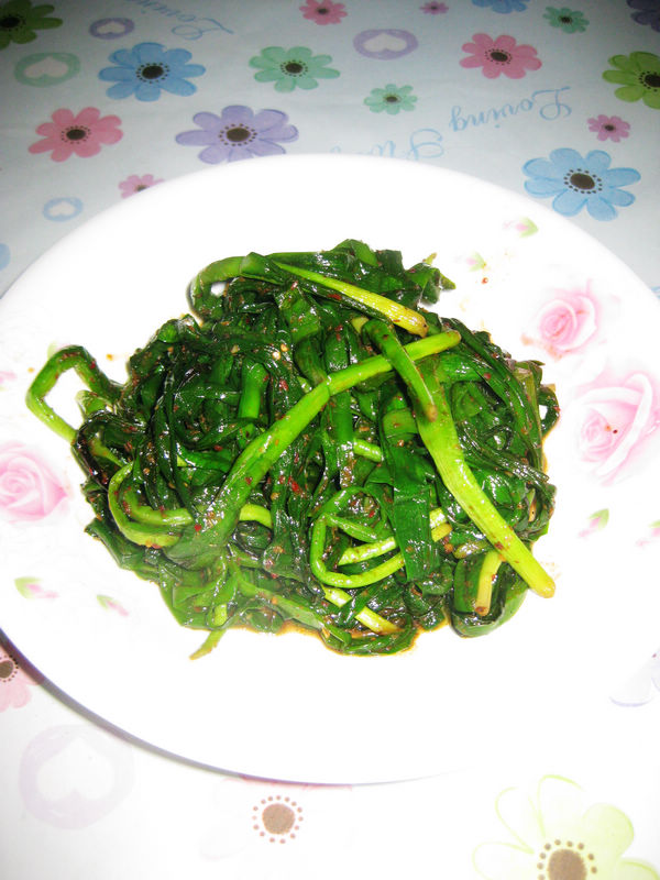 及以下步骤:韭菜一把,洗干净~ 锅热后,导入少量的油,晃动锅,使油沾满锅。 韭菜一把,洗干净~ 锅热后,导入少量的油,晃动锅,使油沾满锅。 韭菜一把,洗干净~ 锅热后,导入少量的油,晃动锅,使油沾满锅。 将韭菜平铺在锅底,小火慢慢烤~ 烤熟 撒入辣椒面,花椒面,盐,鸡精,适量的醋。 拌匀,即可~