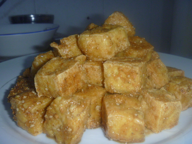 7、豆腐切成大的正方块,有利于成我泡。切的还是小了些