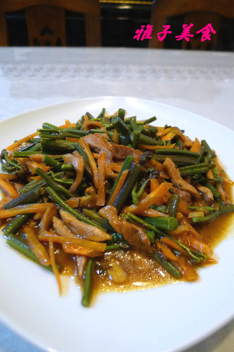 及以下步骤:蒜用少量食用油爆出香味后。 里脊肉炒至变色。 胡萝卜入锅炒片刻,倒入适量的酱油炒至变色。 放入蕨菜翻炒片刻,糖和白胡椒粉调味即可出锅装盘。 蕨菜和胡萝卜切丝,蒜碎。 里脊肉切丝裹上淀粉。 蒜用少量食用油爆出香味后。 里脊肉炒至变色。 胡萝卜入锅炒片刻,倒入适量的酱油炒至变色。 放入蕨菜翻炒片刻,糖和白胡椒粉调味即可出锅装盘。