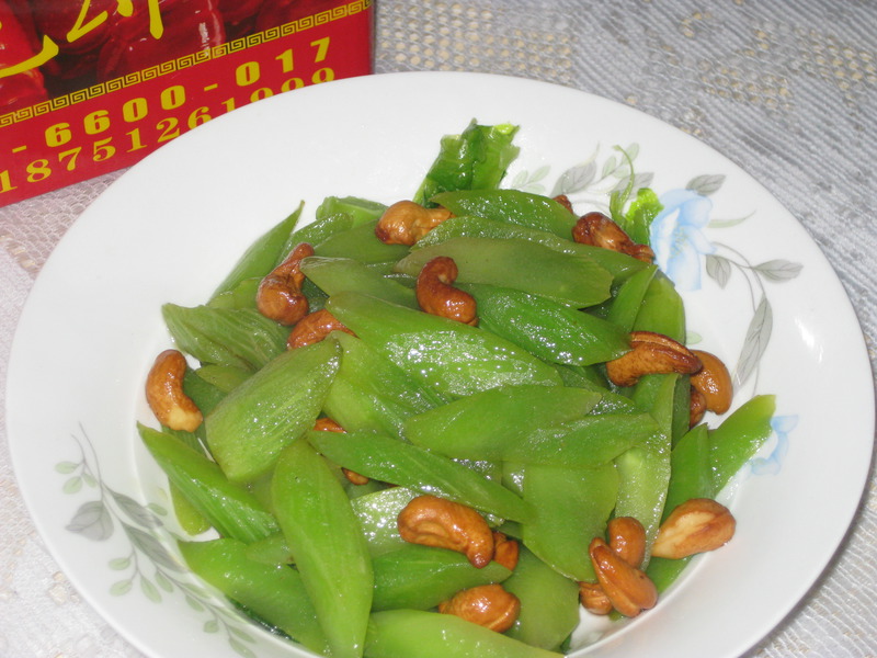 腰果炒莴苣,莴苣鲜嫩、腰果香脆,是一道很简单的清凉菜肴。