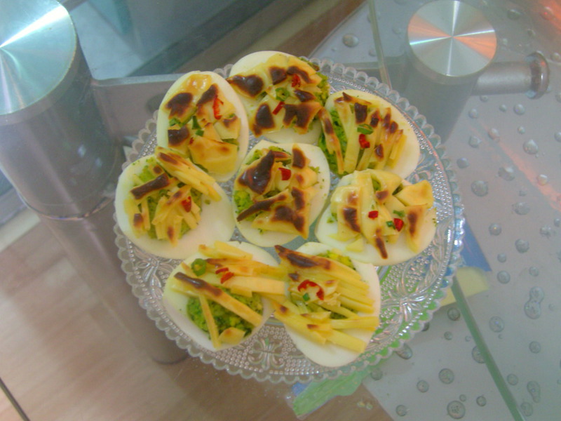 爸爸有个坏毛病,做饭做菜只求量大实惠,老爷子不知道现在的丫头追求杨柳腰巴掌脸吗?这不,一顿早饭没吃,老爷子愣要我带上六个白煮蛋,六个啊!我会不会蛋白质中毒?而且本人平素喜食辣,淡而无味的白煮蛋实在米喜不下去。好吧,让我来给它华丽变身。 法式蒜香条一直是我的挚爱,清新的蒜香混合着黄油芝士,嗯……喜欢,今天这几个鸡蛋就这么捯饬——蒜香芝士焗蛋。配上无糖的奶茶玛奇朵,那啥,生活如此多娇!