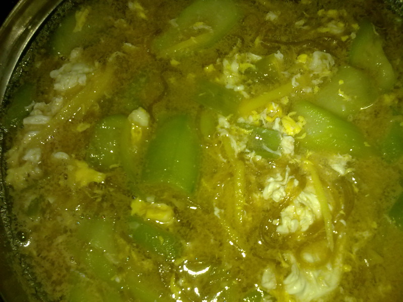 及以下步骤:放入丝瓜炒的差不多熟加水 水开后加入洗好的粉条(我们临沂的粉条) 放入粉条之后煮一会,看到粉条差不多熟的时候开始磕鸡蛋 鸡蛋要直接打进锅里,切记不要用力翻鸡蛋,用铲子把鸡蛋划拉开就别动了等定型在翻动。 鸡蛋快好的时候放入调料,盐,鸡精,五香粉,酱油,醋,都适量 鸡蛋熟了放入味精就可以了,最后把青椒放进去,要那种很小很辣的鲜辣椒 开吃吧,记得醋可以多放点很好吃,酱油别太多稍微上点色就ok 很好吃的呵呵,放入米饭里,哈哈那个味道真的不错。 抱歉又是这么的不清晰。。。原谅我吧,谁让我老是晚上才做饭呢。。。 抱歉又是这么的不清晰。。。原谅我吧,谁让我老是晚上才做饭呢。。。