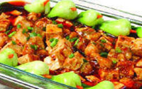 3、再加入豆腐、鲶鱼及其它调味料,烧透入味,勾淀粉收汁即成。