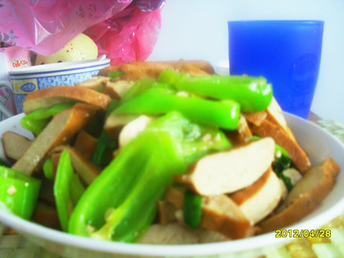 今天早晨从市场上买了些辣椒和豆腐干,所以早晨就做了一份简单的菜