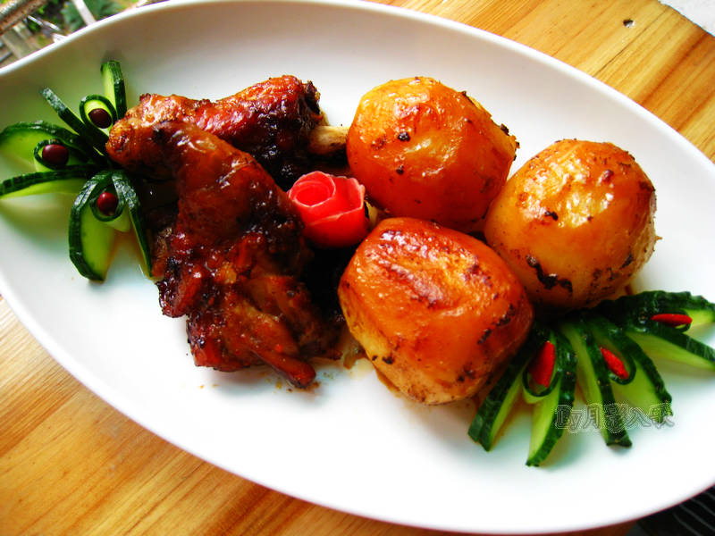 这道鸡香土豆仔,是用烤箱烤出来的。色香味都占全了。土豆仔垫底,腌好的鸡肉在上,匀火不紧不慢的烘烤,烤的土豆仔外焦里嫩,鸡汁润物细无声般缓缓渗入,不多时间烤箱已是香气氤氲,久久不散。烤出的鸡肉香嫩可口,比肯德基的奥尔良烤鸡好吃多了。土豆更不用说啦,喜欢呀。