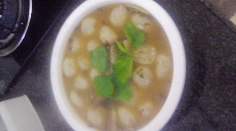 6、等丸子全都浮上来后加入适量的盐和味精,料酒调味。出锅前加入少许的白胡椒粉和芹菜叶即可。